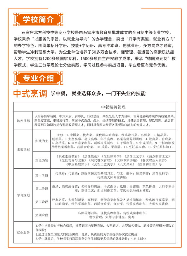 石家庄北方科技中专学校专业:汽修,厨师,计算机,