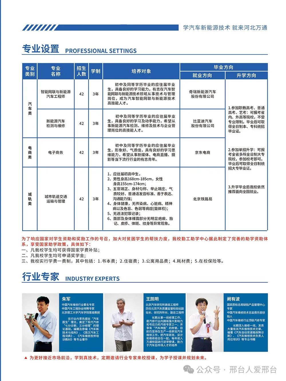 河北万通技工学校是经河北省人力资源和社会保障厅批准成立的一所以汽车类专业为特色、涵盖计算机类、电商类、轨道类、形象设计类等专业的综合性技工院校,坐落于京畿重地—石家庄。